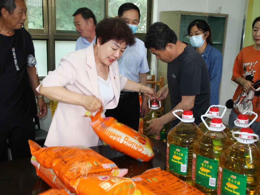 第二站,德州监狱宿舍小区。新湖街道南龙社区居委会党支部书记郭玉华一同慰问老兵优抚对象王保东。