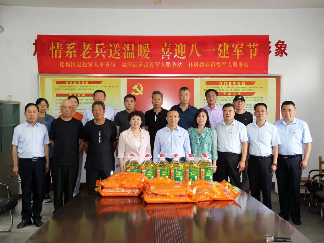 为进一步弘扬拥军优属优良传统,营造拥军爱民的浓厚社会氛围。7月28日上午,公司党支部书记董事长赵玉双、总经理杜长清会同德城区退役军人事务局副局长陈鹏、公司服务项目所在街道办事处领导一起带上慰问品,开展走访慰问活动,把党和政府及爱心企业的温暖问候和祝福送给光荣的退役老兵,受到老兵欢迎。