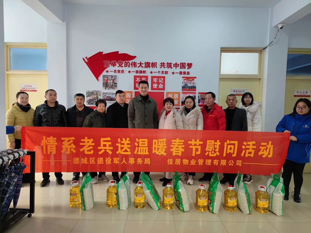 春节即将来临之际,为体现政府与爱心企业对退役老兵的关心关爱,1月14日上午,佳居物业与德城区退役军人事务局联合对所辖小区30名老兵走访慰问。德城区退役军人事务局副局长丁庆林,佳居物业公司党支部书记赵玉双、总经理杜长清参加。
